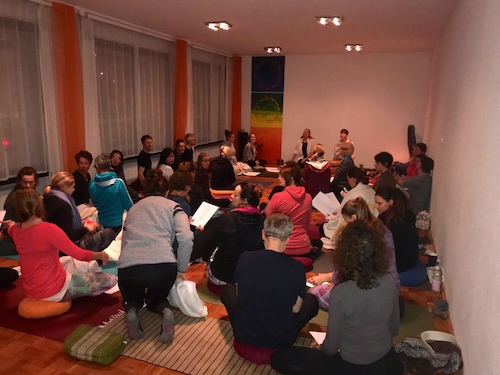 Am 3. Advent, dem 17. Dezember 2017, wurde es besonders besinnlich und weihnachtlich bei uns in der Yogaschule SOLIS. An die 40 Yogis und Yoginis besuchten unsere Weihnachtsfeier. Wir mussten spontan die angeleitete Praxis auf zwei Räume verteilen und Niels freute sich darüber im kleinen Raum anzuleiten, während Angelika die Teilnehmenden im großen Raum in Bewegung versetzte. Atemrauschen ertönte und füllte die Räumlichkeiten mit Eurer tollen Energie. Wir sind begeistert über das rege Erscheinen und dankbar für jede/n Einzelnen. Bettina hat mit uns freudevoll, in Begleitung ihres Harmoniums, Mantras gesungen und so einen Raum voller Schwingungen geschaffen, in die wir ganz und gar eintauchen konnten. Danke auch nochmal für diese Bereicherung. Der Geschmack von leckeren Mandarinen, Nüssen und Yogitee erzeugte eine weihnachtliche Atmosphäre. Die Gehmeditation sowie die Liebe-Güte Meditation rundeten den Abend ab. Vielleicht habt Ihr entstandene Eindrücke in Euren Alltag mitgenommen und könnt Euch daran erfreuen.