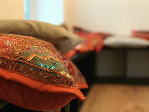 Wir haben die Winterpause, neben dem Praktizieren besinnlicher Meditationen und dem Feiern der Festtage, für eine Verschönerung unserer Yogaschule genutzt. Die Motivation für einen Umbau entwickelte sich bereits im letzten Jahr. Unsere Idee war genügend Platz für Eure Schuhe, Mäntel und Jacken zu schaffen und darüber hinaus noch einen schönen Bereich zur Zusammenkunft und Entspannung zur kreieren. Daraus hat sich nun eine komplette Veränderung des Küchenbereiches ergeben und die Gestaltung einer nützlichen Sitzbank mit vielen Kissen im indischen Stil. Auf dieser Sitzbank könnt ihr in gemütlicher Atmosphäre genüsslich einen Tee nehmen und Euch an unserer neuen Wasseranlage bedienen, die Euch unbegrenzt mit basischem Aktivwasser versorgt. (Zum Thema Wasser folgen in Kürze weitere Blogeinträge!) Natürlich könnt ihr Eure Trinkflaschen auch auffüllen, um für den Nachhauseweg hydriert zu bleiben. Wir freuen uns das neue Jahr mit dieser Veränderung zu eröffnen und hoffen Euch schon bald bei einem Wasser in unserer „Chilllounge“ anzutreffen.